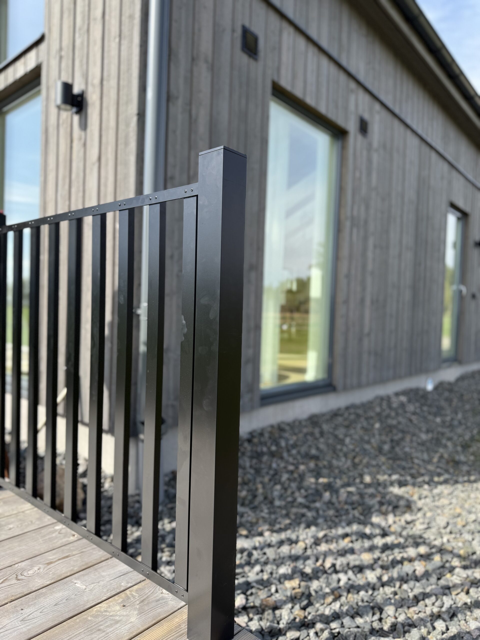 Unngå vedlikehold og invester i et stangrekkverk som vil vare i lang tid fremover. Gjerdeseksjonen er laget i Sverige i vår egen fabrikk i Värnamo. Gjerdeseksjonene kan også tilpasses ved behov.