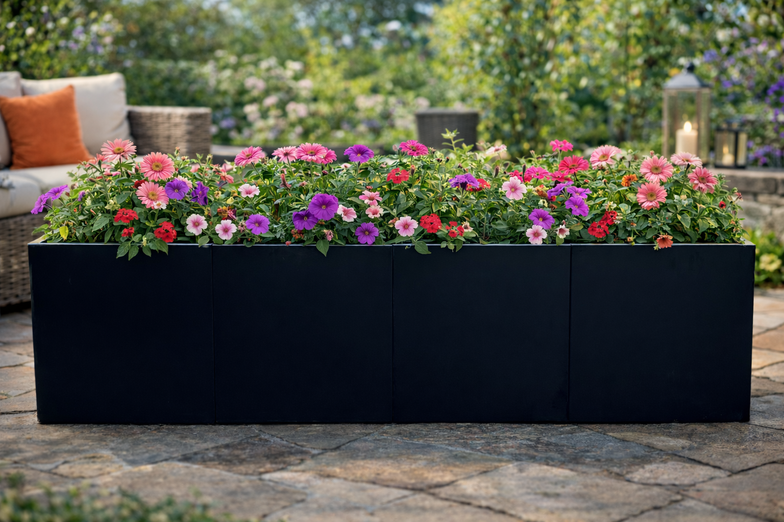 Oppdag Recals blomsterkasser i varmgalvanisert plate som deretter males med pulverlakk Sort- RAL 9005- Glans 30. Perfekt for å gi din hage eller offentlige miljø et elegant og designet preg. Disse blomsterkassene er laget med en imponerende tykkelse på 1,5 mm, og garanterer holdbarhet og stabilitet i lang tid fremover.