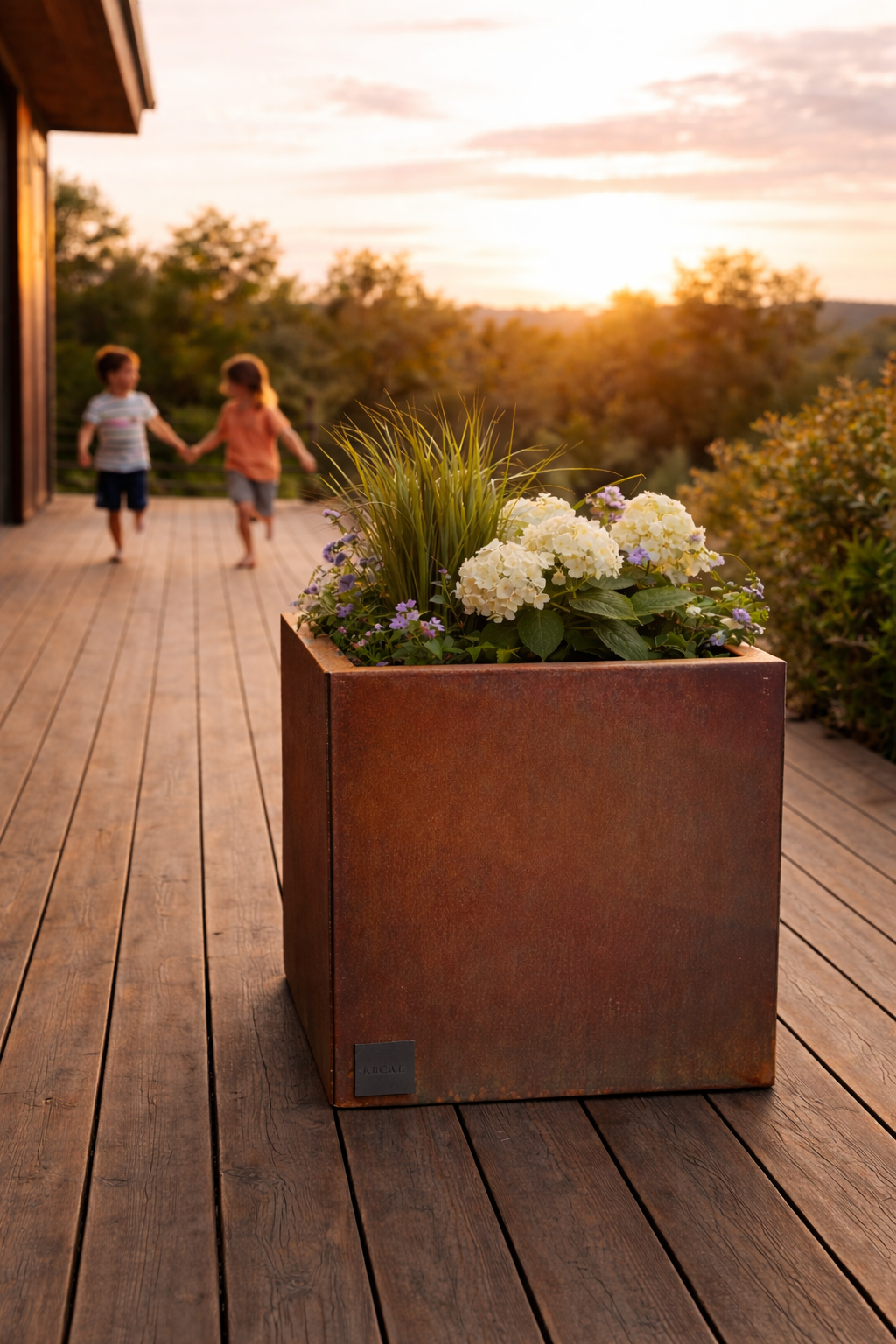 Oppdag Recals blomsterkasser i corten, perfekt for å gi din hage eller offentlige miljø et elegant og designet preg.
